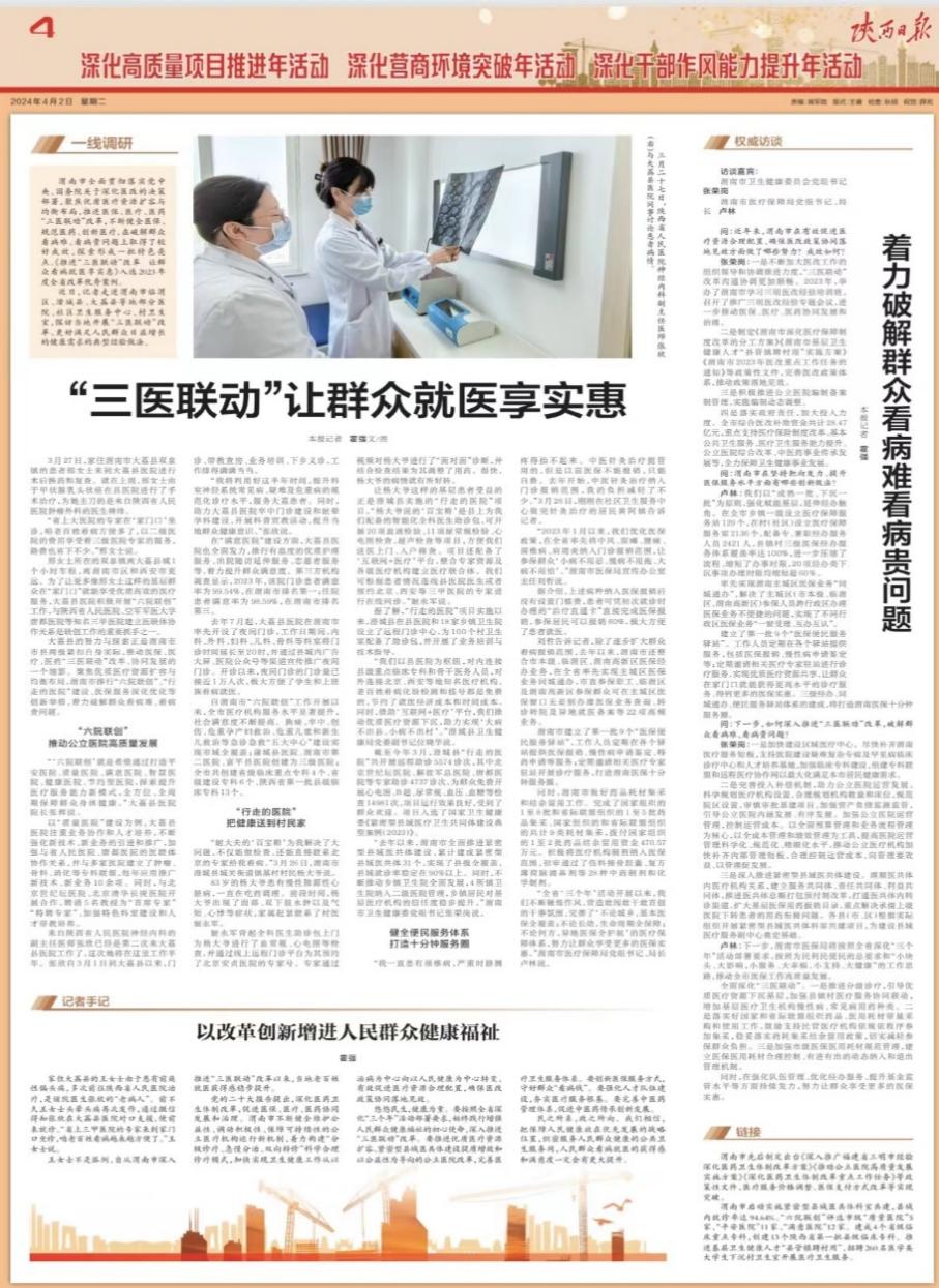 近日,《陕西日报》以《“三医联动”让群众就医享实惠》为题,对21点技巧中心