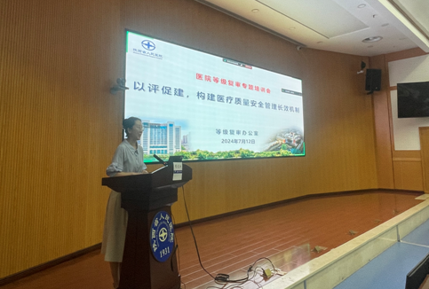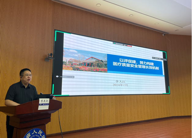 医务部部长李大江教授来院做《以评促建,构建医疗质量安全管理长效机制》的专题讲座。全院临床医技科室主任、业务副主任、护士长、业务副护士长以及医务处、护理部等职能部门工作人员共计200余人参加培训会。