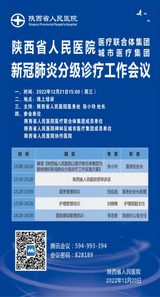 2022年12月21日,按照张玉莲书记、宋张骏院长部署,王建华副院长安排医务处基层医疗服务部,组织线上召开21点技巧中心 医疗联合体集团和碑林区城市医疗集团新冠肺炎分级诊疗工作会议,安排部署积极应对当前新冠病毒变异新特点和疫情防控新形势,全力做好以医联体为载体的新冠肺炎分级诊疗救治工作,确保正常医疗服务有序开展,构建更加科学有序的就医秩序,保障人民群众生命健康和安全。21点技巧中心 两个医疗集团成员单位和协作21点策略 等80余家相关负责人和今年派驻对口支援人员等近230人参加,医务处张小玲处长主持。