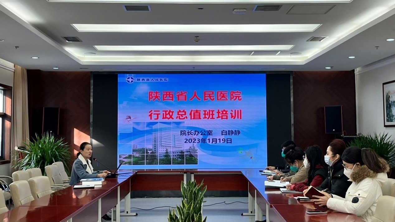 为提高行政总值班应对风险能力,为总值班培养新生力量,1月19日上午,院长办公室根据当前医疗、政策、疫情等形势,组织新加入行政总值班的10名行政管理干部进行岗前培训。受院长办公室主任张真妮委托,副主任白静静对本次培训进行主持和讲解。
