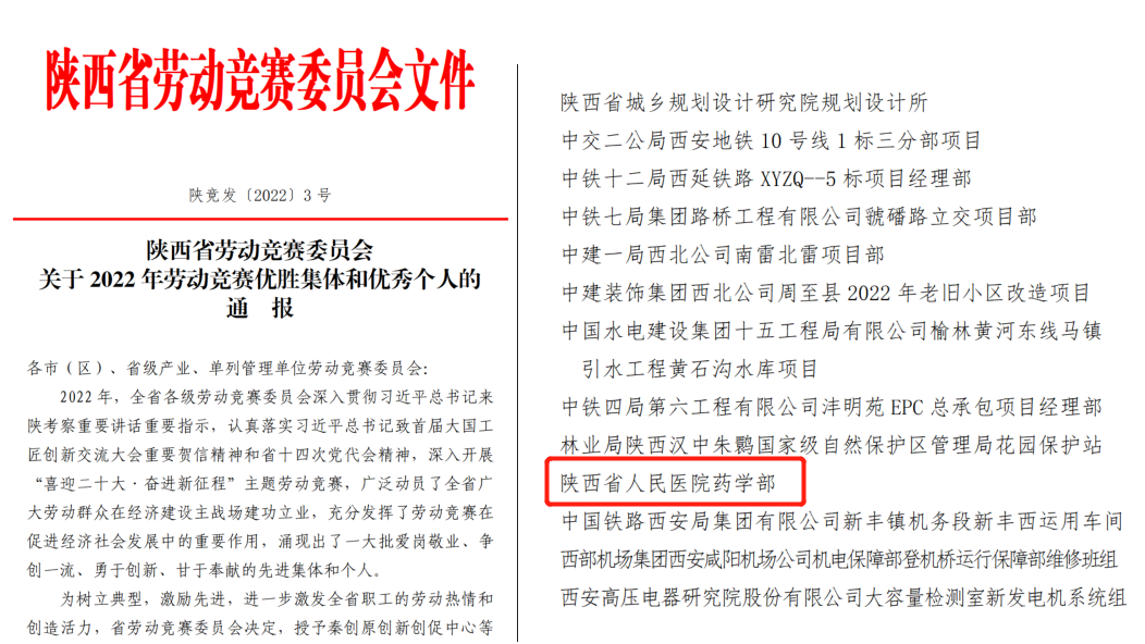 药学部荣获“劳动竞赛优胜班组”荣誉称号。