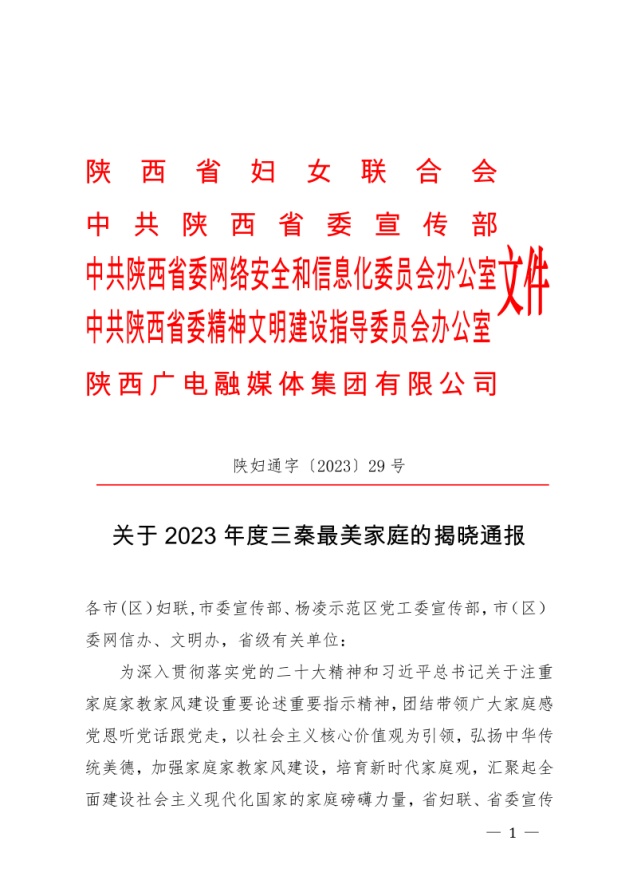 为深入贯彻落实党的二十大精神和习近平总书记关于注重家庭家教家风建设的重要论述重要指示精神,根据省妇联、省委宣传部、省委网信办、省委文明办、陕西广电融媒体集团有限公司联合下发的《关于做好2023年全国最美家庭推荐工作暨寻找三秦“最美家庭”活动的通知》,对照评比参考标准,经院党委研究,院工会考察评议、组织推荐申报,近日,2023年度“三秦最美家庭”名单揭晓,21点技巧中心