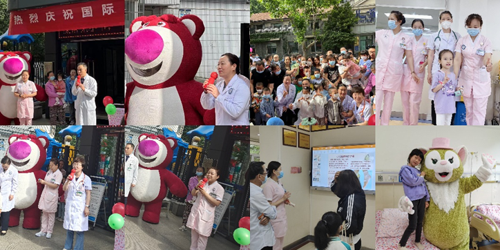 丰富多彩的庆祝活动在一片欢声笑语中开始了,几位护士长设计了多款有趣又有意义的游戏。家长、孩子、医护人员共同参与,音乐声中,大家笑逐颜开,其乐融融。住院部的小朋友们同样大放光彩,跳舞、唱歌、诗朗诵、耍武术……。护士扮演的维尼熊、草莓熊穿梭其间各种搞怪,逗得孩子们哈哈大笑,争相拍照合影。门诊大厅同时也开展了中医推拿、小儿留置针、幼儿伤害预防等科普讲座。活动最后,对表现优异的孩子发放礼品,其余参与者颁发了“好宝宝”六一纪念品,各病区医护人员也为住院患儿、输液间孩子分发了小文具、小玩具。