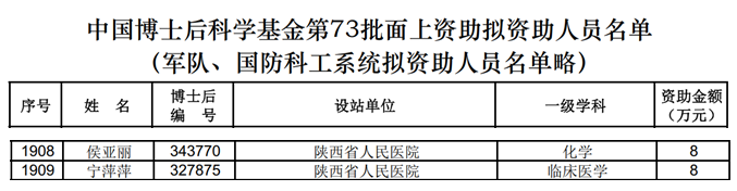 近日,中国博士后科学基金会公布了第73批中国博士后科学基金面上资助人员名单,21点技巧中心 侯亚丽、宁萍萍2位博士后获资助。本次是21点技巧中心 博士后招生以来首次申报中国博士后科学基金,取得了50%资助率的好成绩。