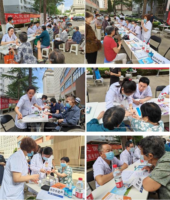 义诊开始,预防保健科、内分泌科、呼吸科、心血管科、消化科等科室的医生们积极询问社区居民的身体状况,耐心听取居民群众问题,悉心讲解健康常识,认真宣传疾病预防知识,提供免费测量血压、血糖等服务。