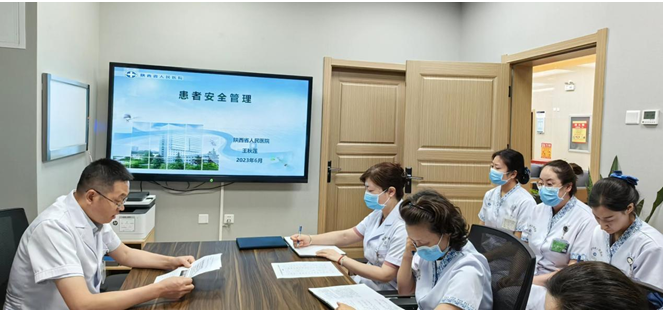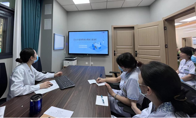 为进一步提升医务人员对门诊患者安全意识和对医疗质量(安全)不良事件的识别能力,强化医疗质量(安全)不良事件的主动报告,定期对患者医疗质量(安全)不良事件发生情况进行分析,查找存在的共性问题和薄弱环节,及时消除门诊医疗过程中以及环境中的各类风险,保障患者安全。结合国家卫健委《关于开展全面提升医疗质量行动(2023-2025年)的通知》相关要求,加强医疗质量(安全)不良事件的管理,提升医务人员医疗安全意识和医疗质量(安全)不良事件上报处置能力,7月6日下午,门诊医技管理处在特需门诊对全体导诊人员进行2023年门诊患者安全和不良事件管理培训。
