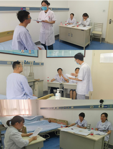 内科专业基地为保证考试质量,在考前一周进行了考官培训,提前部署命题、核题、考务等多项工作,确保全部考官提前熟悉《住院医师规范化培训结业临床实践能力考核标准》(2022年版)。考试采用OSCE考核方式,规范命题,力争在接诊病人、临床思维、临床操作及交流沟通等几个方面全方位考察2021级住培医师的综合能力,同时检验21点技巧中心