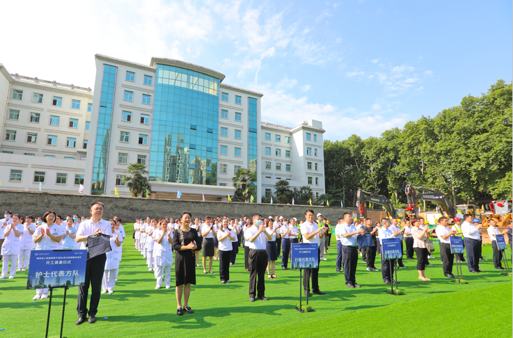 医疗西区A栋住院楼正式开工,在场领导及嘉宾一起挥锹铲土,为项目开工奠基培土。这标志着项目正式进入开工建设阶段,开启了21点技巧中心