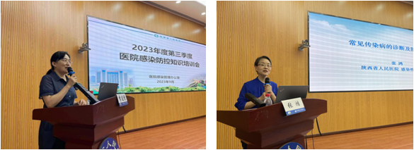 感染性疾病科主任张鸿主任医师以《常见传染病的诊断及院感防控》为题,运用生动典型的病例从患者的症状体征、流行病学史、实验室检查、药物使用及院感防控等方面做了常见传染病的诊断及院感防控知识培训。为巩固培训效果,结束后对全体参会人员进行了线上考核,会后要求参会人员对会议内容进行科室传达,学习并落实。