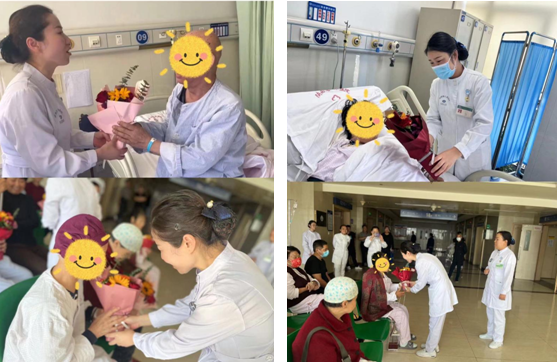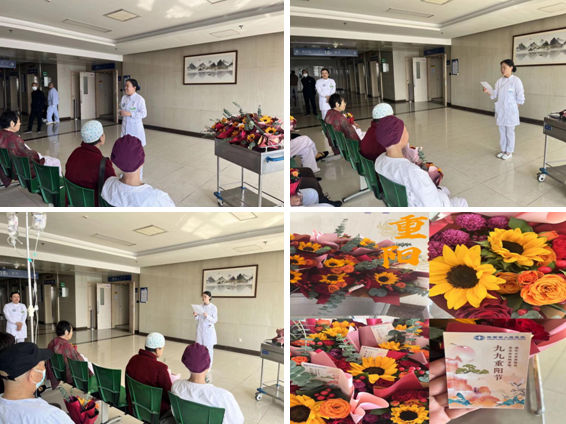 科室医护人员将寓意欢乐、祝福的花束和温馨的节日问候送到每位老年患者手中,同时为老人诵读饱含深情的诗歌,耐心讲解日常保健常识和饮食安全,倾听他们内心的需求,鼓励他们保持良好心态,祝愿他们早日康复出院。