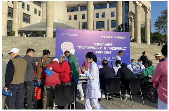 2023年10月29日是第18个“世界卒中日”,主题是“卒中识别早,救治效果好”。为了更好地服务百姓健康,普及脑卒中的防治知识,提高卒中防治的意识和能力,促进健康行为的养成,在院领导的高度重视和安排下,医务处组织神经内一科、神经内二科、神经内三科、神经外科、心内二科、内分泌科和康复医学科专家和护理二十余人组成卒中防治诊疗团队在陕西省图书馆广场举办第18个“世界卒中日”暨“千名医生进社区”科普义诊活动。
