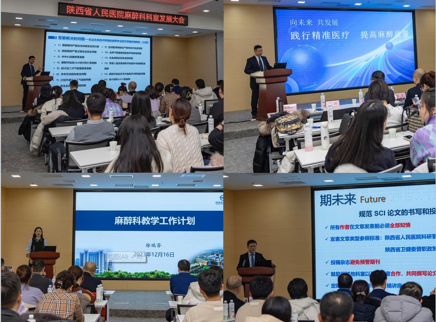 12月16日,麻醉科召开科室学科发展大会。大会以“踔厉奋发担使命 笃行实干开新局”为主题,王建华副院长线上致辞,学科办田应选主任、麻醉科白宁主任分别讲话,科室新一届领导班子分别就业务发展、质量提升、人才培养、教学科研、亚专科发展提出了三年规划和实施方案,以期推进学科发展,科室全体医护参加会议。