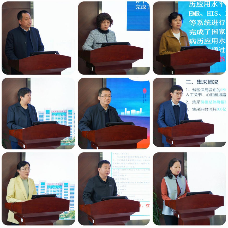 高质量发展方案和五个细化方案!在忙碌奋斗中时间总是过得飞快,转眼又到了总结盘点的时刻!在党委和党政主要领导的指导安排下,经过院办前期的充分筹备,1月11日下午,组织召开2023年度行政管理及党建工作述职大会。全院行政处室、部门、专项工作办公室、各党总支共38个一一上台,在4分钟时间内汇报创新、亮点、增量工作,兼职支部书记同时增加2分钟汇报支部工作,并进行满意度互评。党政领导班子全体成员、总支书记、行政处室部门正、副处长、助理、科长、总护士长参加。宋张骏院长主持。