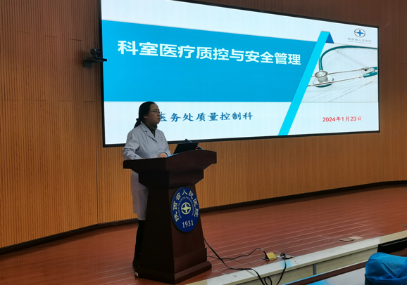 为进一步强化科室医疗质量管理,在院领导的指导下,按照处室工作计划,医务处于2024年1月23日举办科室医疗质控与安全管理培训会,对主院区、西咸院区临床医技科室质控员及质控医师进行了培训,共97人参会。会议由医务处李晓晴副处长主持。