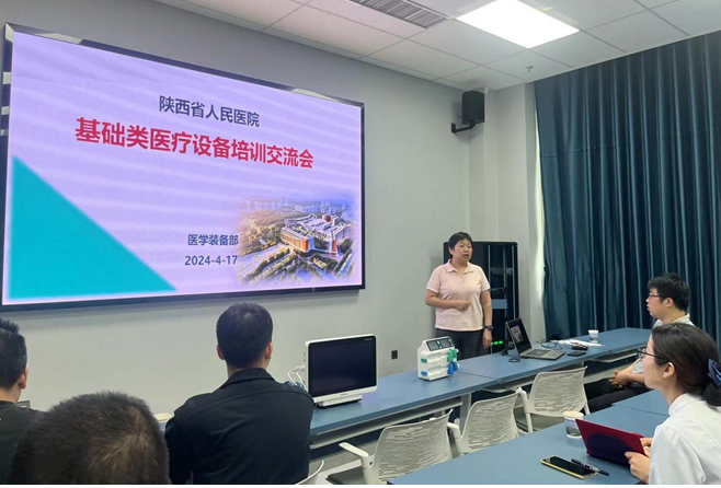 医疗设备使用效能,加强设备运维管理能力,4月17日下午,医学装备部在西咸院区组织召开临床基础医学装备运维培训交流会。会议由医学装备部薛鸿主任主持,特邀请厂家培训工程师对各临床医护人员、全体医工人员进行使用、维护、保养、常见故障处理等全方面的技能培训。