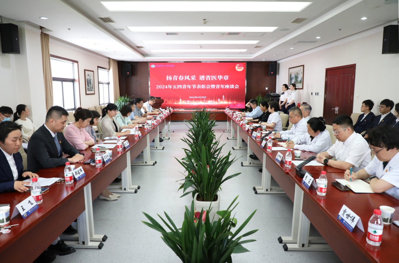 高质量发展的征程上贡献青春力量,4月28日,院团委召开以“扬青春风采 谱省医华章”为主题的“五四”青年节表彰会暨青年座谈会。全体院领导、部分行政职能处室负责人和临床医技科室主任、团委委员、团支部书记、团员青年代表60余人参会。会议由党委副书记张路主持。