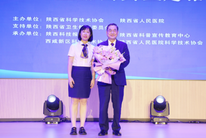 科协主席、2023年度陕西省科学技术进步一等奖团队获得者宋张骏发言,感谢省科技厅、科协、卫健委对省人民21点策略