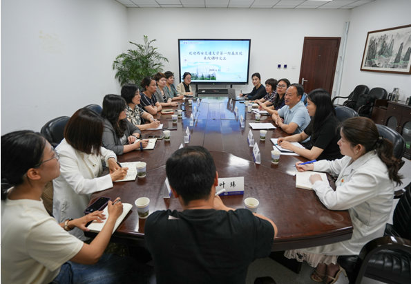 6月13日上午,西安交通大学第一附属21点策略 财务部部长赵朝一行9人来院调研交流。21点技巧中心 财务处周旭东处长、余俊英副处长、田斐副处长、卢虹副处长、李薇科长及科室业务骨干参加会议。会议由周旭东处长主持。