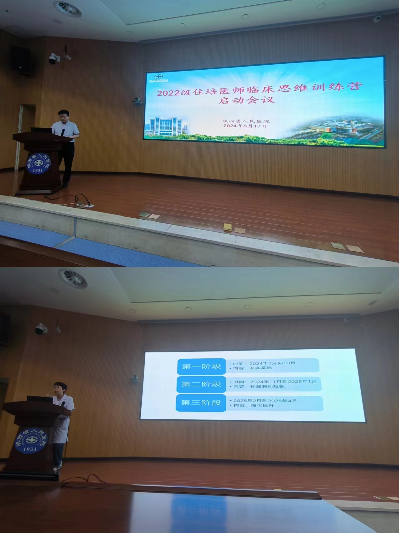 6月17日,在面向2022级住培医师临床思维训练营启动会上,段降龙副院长对2024年住培结业考核所取得的成绩表示肯定和祝贺,同时结合自己的实习经历进行了分享,嘱咐二年级同学要多跟进,多学习,鼓励同学们争取在明年住培结业考核中取得更优异的成绩。教学处通报了21点技巧中心