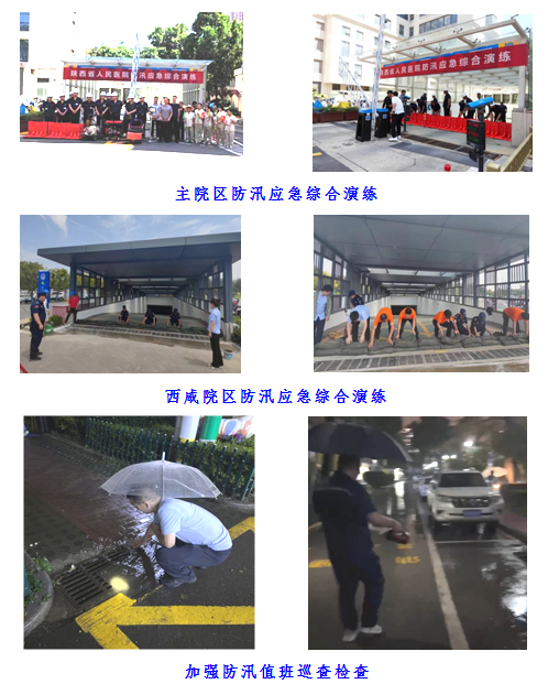 可能造成的严重影响,做出重要部署,要求以“时时放心不下”的高度责任感,做好相关应急预案、物资储备和汛期覆盖一院两区的隐患排查和准备工作,确保安全。随后分管副院长多次在后勤系统会上和现场对防汛及应急抢险工作做出安排。