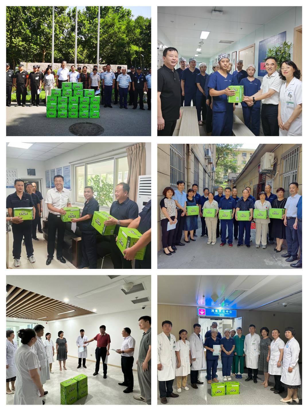 院领导先后来到主院区和西咸院区,分别对A栋楼建设办公室、保卫处、消毒供应科、饮食班等部门开展慰问工作。每到一处,都仔细询问职工的工作和生活情况,为他们送上慰问信和防暑降温品,向高温期间仍坚守岗位的职工表示真挚的敬意和感谢。