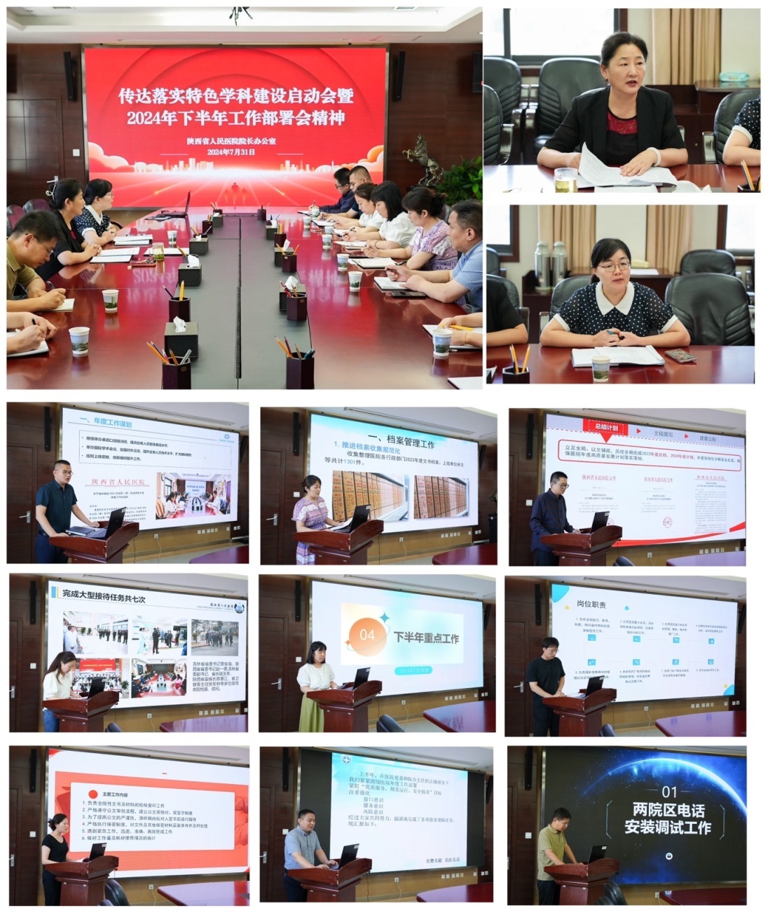 特色学科建设启动会暨2024年下半年重点工作部署会吹响了冲刺下半年的冲锋号,党政领导对扎实做好下半年工作作出周密部署,进一步明确了工作目标和任务。7月31日下午,在宋张骏院长安排下,院长办公室迅速召开专题会议,传达学习下半年工作部署会精神,并结合办公室实际,对下半年重点工作作出安排。院办全体成员参加会议,焦丽敏副主任主持会议。
