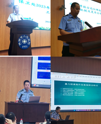 8月13日下午,保卫处举办安保知识培训会暨2024年半年工作总结会。会议由保卫处副处长解博主持,特邀红缨路派出所刘育春所长与西安市公安局治安处李占博警官做安保知识专题培训,全体保卫人员参加。