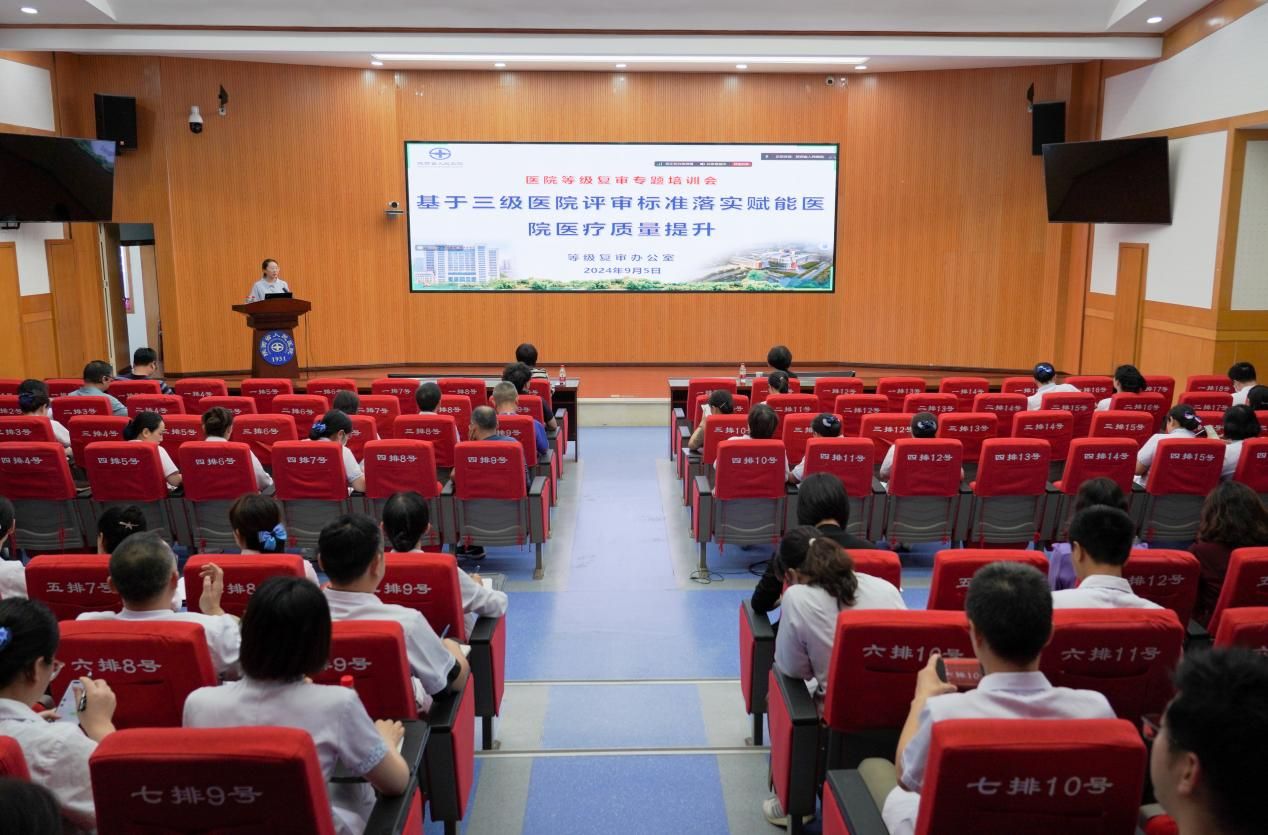医疗质量提升》的专题讲座。全院临床医技科室主任、业务副主任、护士长、业务副护士长以及医务处、护理部、门急诊与医技管理处、大数据中心等职能部门工作人员共计200余人参加培训会。