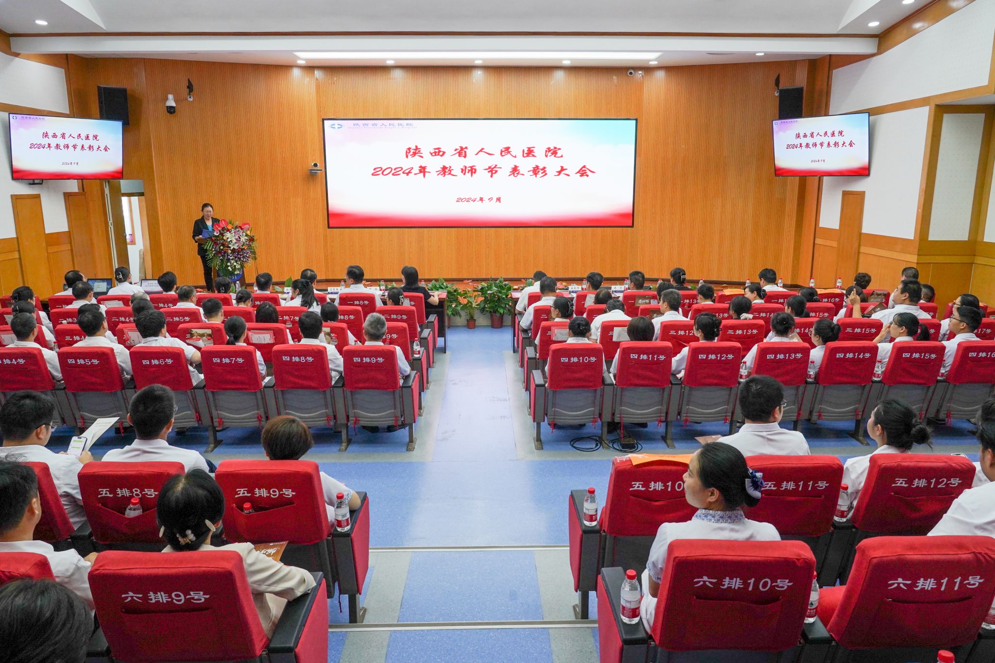 党政领导班子成员、获奖教学集体和个人、各专业基地及临床医技科室教学管理人员、相关职能处室代表、部分优秀学生代表参加表彰大会,共同对全院躬耕教坛的教师们致以节日的问候。