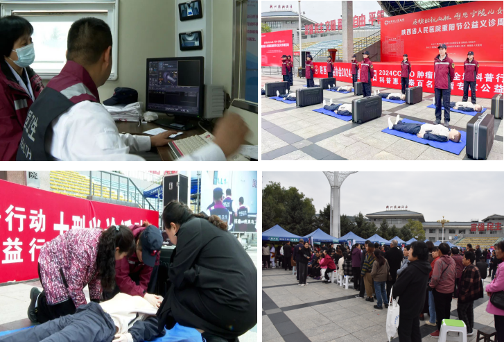 、陕西省抗癌协会泌尿外科、骨科、神经外科、心理科、CT室等18个专业的28名优秀专家及国家紧急医学救援队(陕西)的80余名队员组成的医疗队联合开展了大型公益义诊活动。各位专家详细询问病情,仔细观阅片子,为患者提供各类疾病的专业诊断及治疗建议、疾病咨询服务,普及急救知识,手把手教授徒手心肺复苏及AED的使用方法等,切实将优质医疗资源送到基层百姓身边。活动同时设置有奖问答环节,以轻松愉悦的形式宣讲健康理念,科普健康知识,让健康知识深入群众心中。义诊共计接待患者956人,免费项目抽血化验127人、B超检查61人、血糖监测600人、CT拍片70人,急救知识培训64人,健康宣教303人,获得了黄陵县群众的广泛赞誉。黄陵县委书记刘矿平现场看望慰问了义诊专家,参观了陕西国家救援队移动21点策略