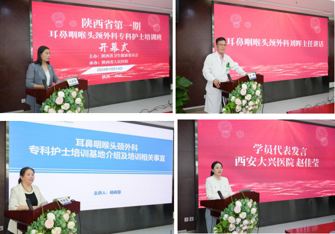 护理部主任助理刘红梅、耳鼻咽喉头颈外科副主任张文、总护士长张艳、基地负责人杨晓蓉及来自省内各地的学员参加开幕式。