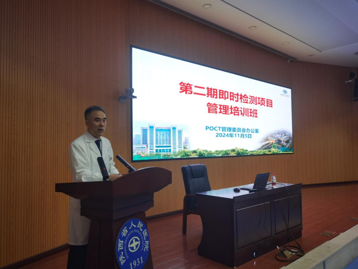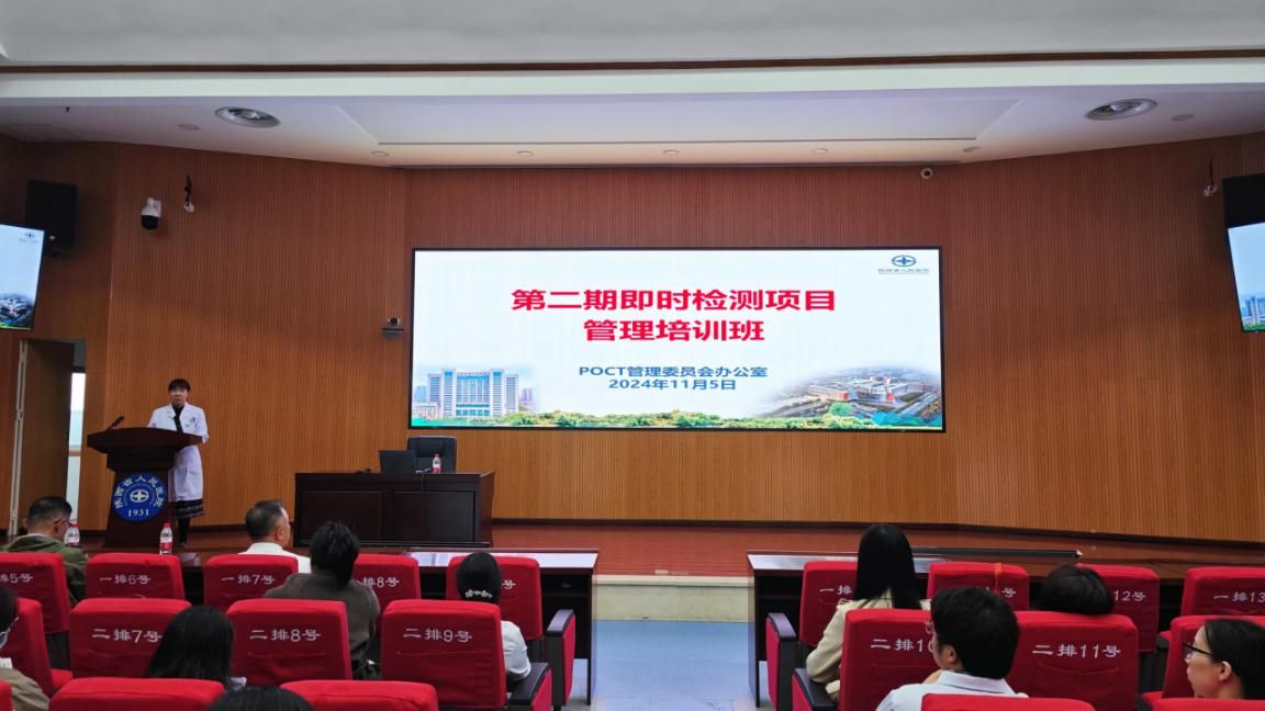 即时检测项目管理工作的计划安排,11月5日下午,门急诊与医技管理处与检验科(POCT 管理委员会办公室)共同举办第二期临床科室即时检测项目管理培训班。王建华副院长,检验科张利侠主任、袁军副主任,门急诊与医技管理处徐凯科长及临床科室150余名医护人员参加此次培训。
