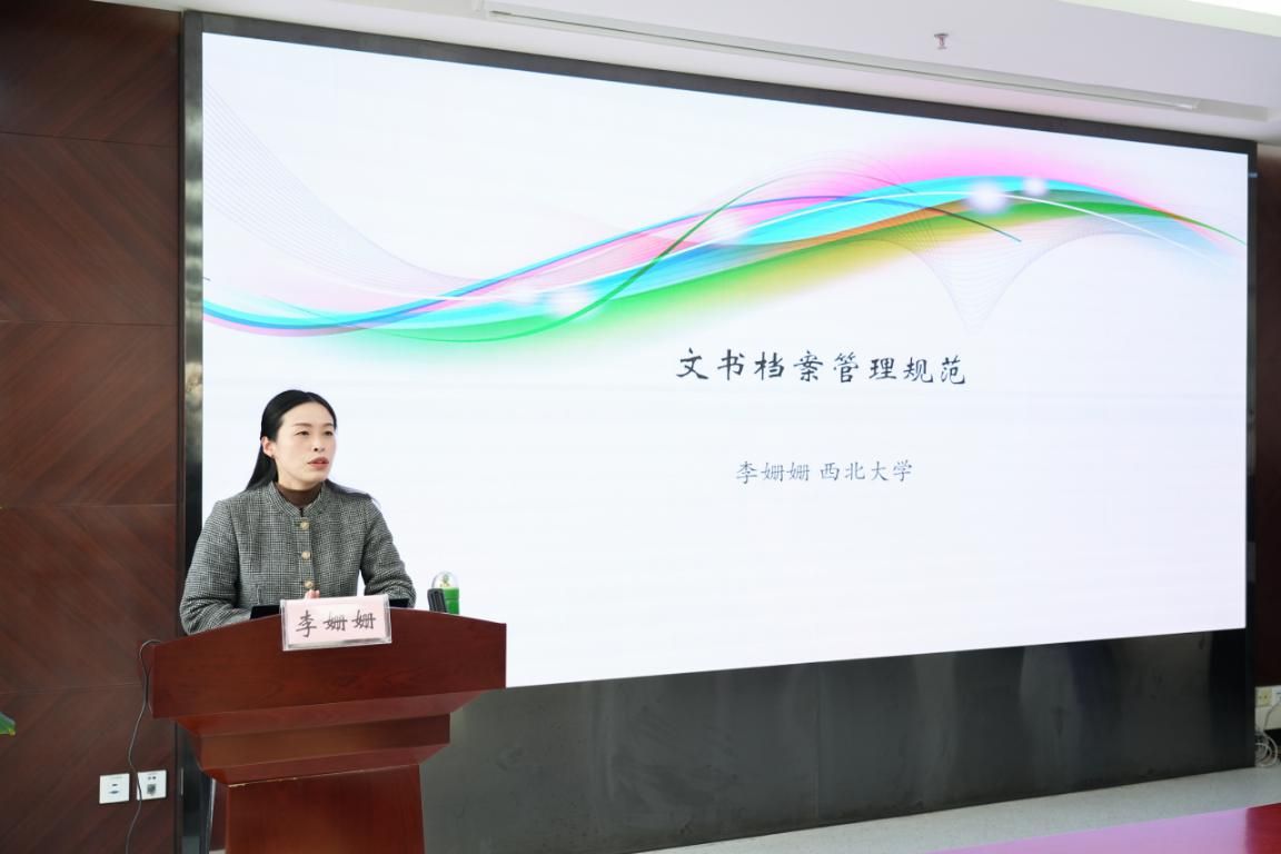 档案精细化、规范化管理,确保档案的完整性、安全性、可追溯性。11月6日下午,在宋张骏院长的安排下,院长办公室特邀西北大学公共管理学院李姗姗副教授来院做档案管理规范专题培训,全院各级行政管理部门近百人参加。院长办公室张真妮主任主持。