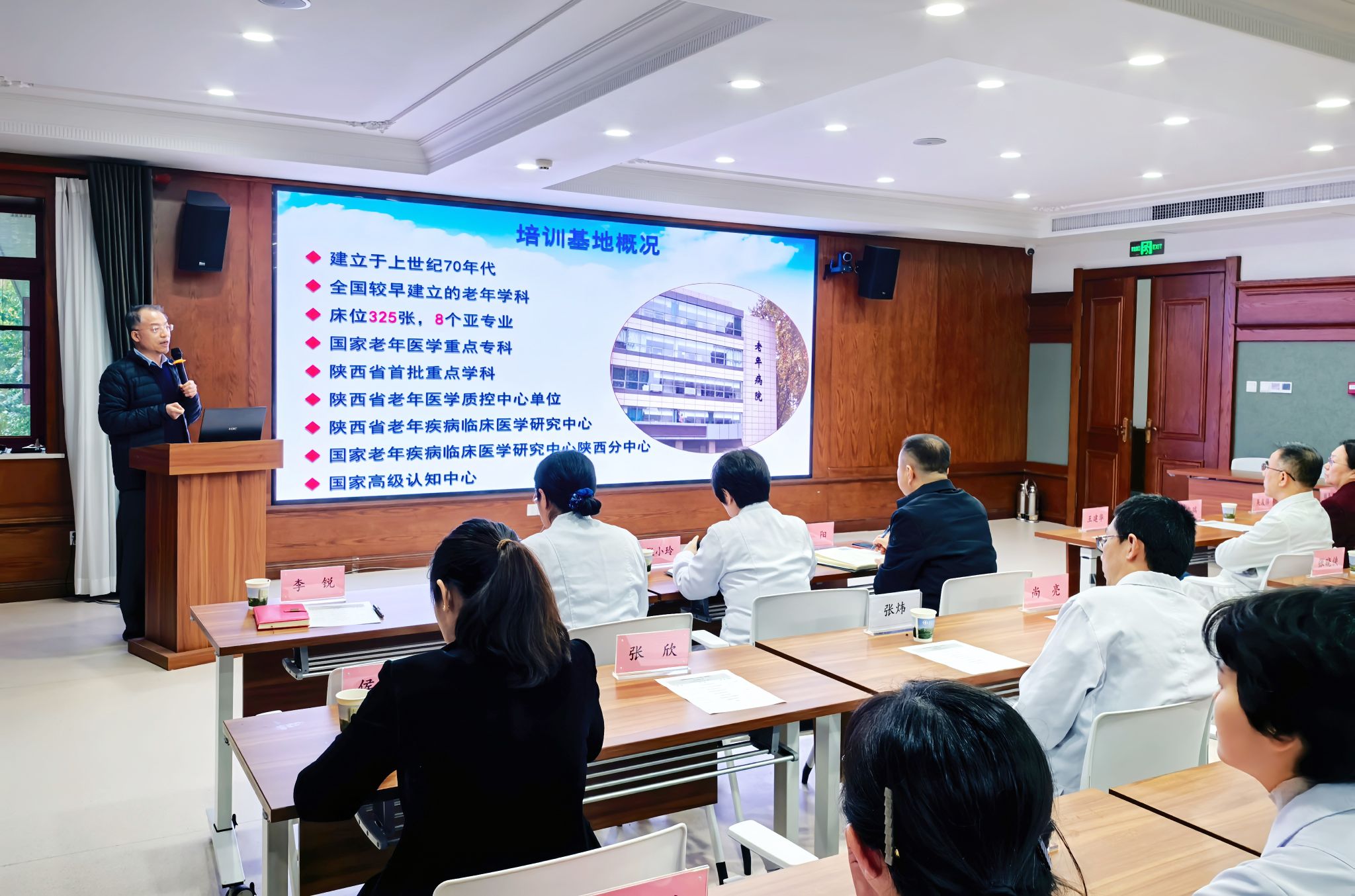 王建华副院长、医务处张小玲处长、教学处马东瑞处长、老年病院各科主任、秘书和25名学员参加会议。