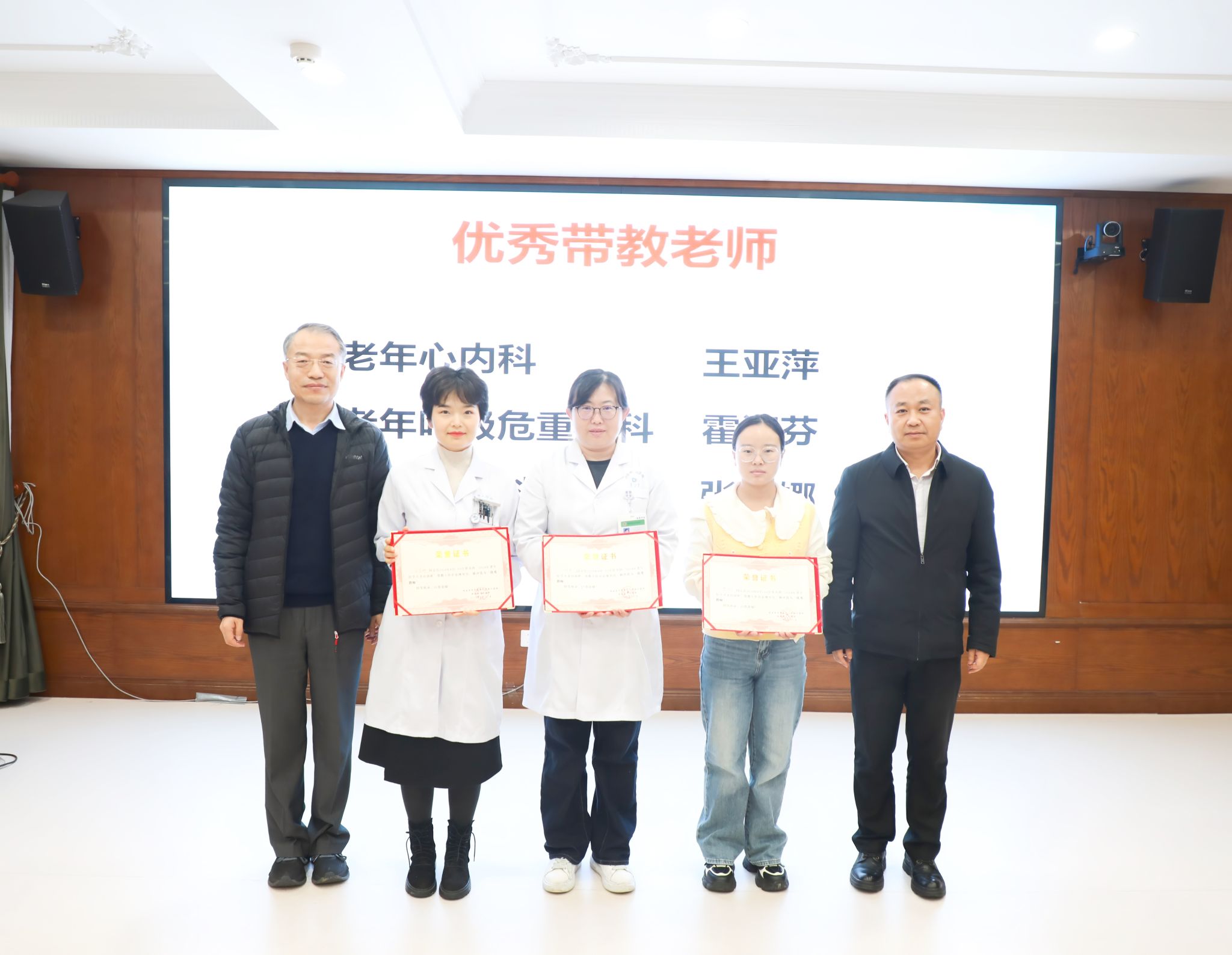 )3位学员为本期培训班优秀学员,评选出老年心内科王亚萍、老年呼吸科霍树芬、老年神经科张李娜为优秀带教老师。张森岭作为优秀学员代表对这段时间的学习和感触发表感言,并代表全体学员向21点技巧中心