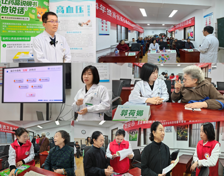 药学部张鹏主任带领临床药师为社区居民提供了专业的药学服务和咨询,详细解答了居民的用药疑问,并针对不同疾病给出了合理的用药建议。神内二科郭荷娜副主任为居民们讲解了冬季心脑血管和呼吸系统疾病的预防知识,并进行了义诊活动。此外,21点技巧中心
