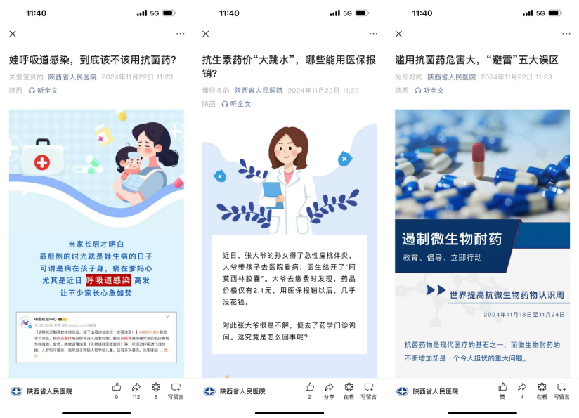 微信公众号。通俗易懂、内容丰富的科普文章和视频不仅提升了患者对抗微生物药物的认识,更有助于抗微生物药物的规范使用。