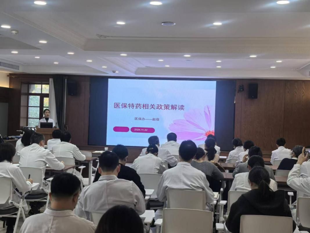 特药责任医师及临床医务人员对医保特药政策的知晓率,有效保障参保人员合理用药和维护医保基金安全,11月22日下午,医保管理处联合药学部组织召开特药医保支付和管理政策解读及鉴定审批流程培训交流会。各临床科室特药责任医师、部分科主任、医保、财务工作人员共59人参加培训交流会。