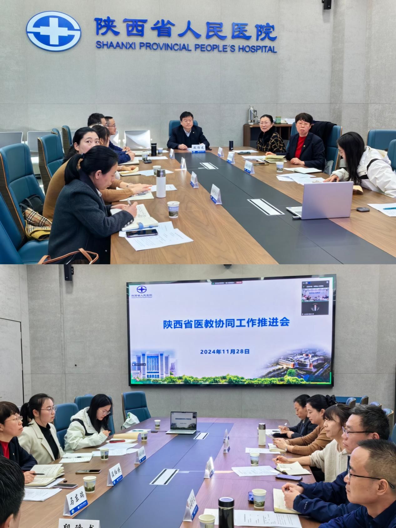 在西咸院区召开联合培养高校医教协同推进会。段降龙副院长、教学处马东瑞处长、温红侠副处长以及西安医学院、延安大学、西藏民族大学、陕西中医药大学等四所高校9位相关负责人参会。