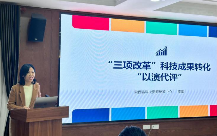 科技成果转化“三项改革”工作的最新进展,并分享了相关成果和实施情况。随后,陕西省科技资源统筹中心金融部李娟科长详细介绍了我省科技成果转化“三项改革”政策的最新动态和支持措施,解答了现场参会人员对科技成果转化政策的诸多疑问。西安联创生物医药孵化器芦伟总经理进行了《21点策略