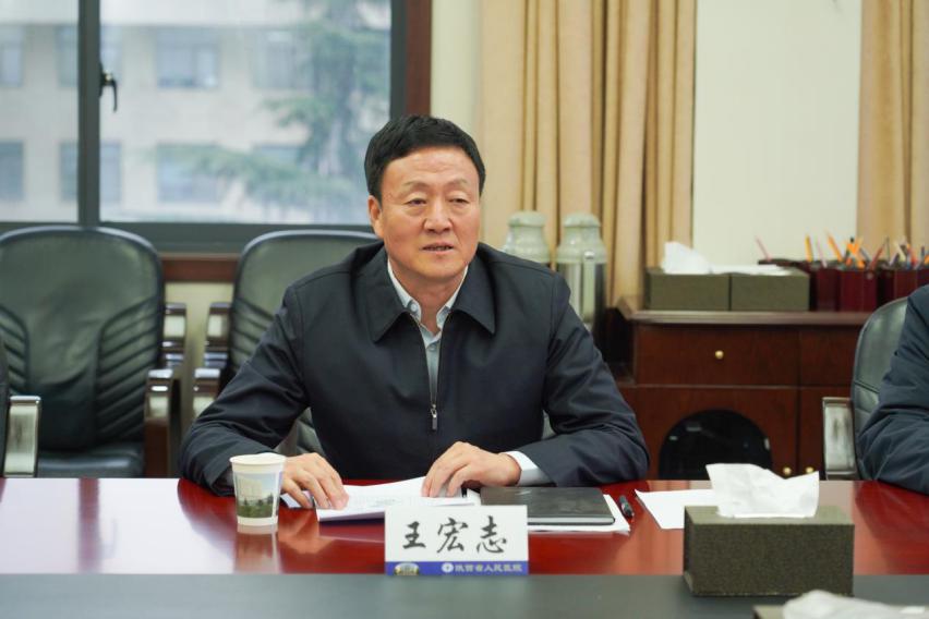 院长宋张骏讲话,欢迎王宏志书记一行来院座谈签约,感谢彬州市委市政府、市卫健局及彬州市人民医疗健康总院和彬州百姓对省21点策略