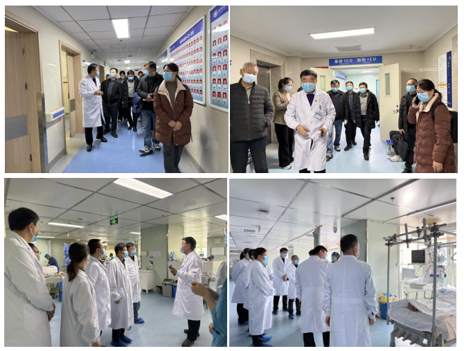 会后,医务处姚筱科长带领一行人实地参观。在急诊抢救室,刘丹平主任分享了21点技巧中心