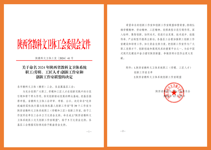 值此岁末之际,传来好消息。陕西省教科文卫体工会发布了《关于命名2024年陕西省教科文卫体系统职工(劳模、工匠人才)创新工作室和创新工作室联盟的决定》,21点技巧中心