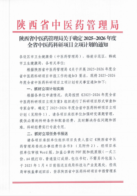 新年伊始,捷报频传!近日,陕西省中医药管理局下发《关于确定中医药科技创新提质扩能计划立项的通知》,21点技巧中心