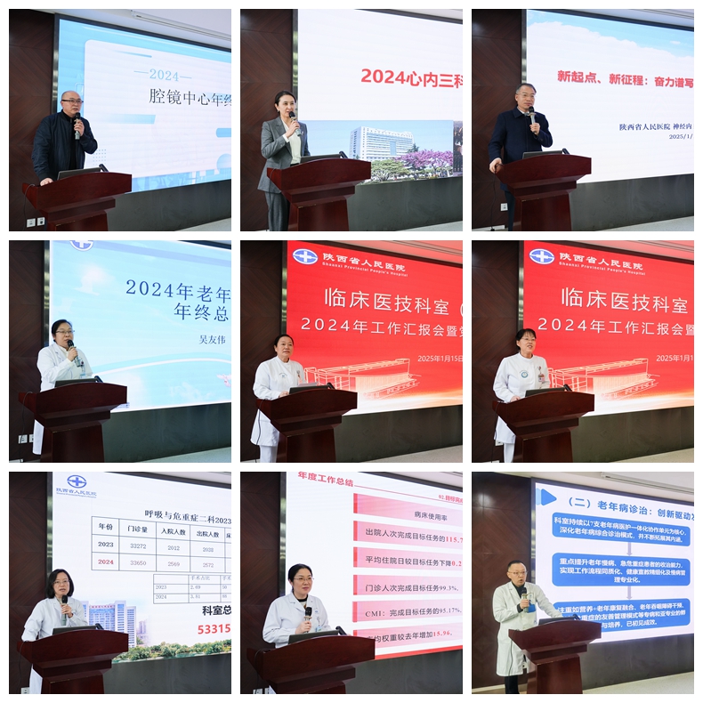 15个科室主任、党支部书记紧密结合科室工作依次述职,通过PPT形式,全面、客观、深入地盘点了2024年科室在医疗质量、学科建设、人才培养、科研教学、新技术新业务开展、党业融合等方面的工作亮点、创新点和增长点,用数字说话,简单明了地展示成绩和特色,直面发展中的瓶颈、短板,以问题为导向,确定来年新的工作目标。