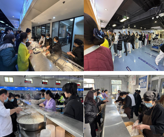 食堂的工作人员便忙碌起来,精心准备煮制汤圆。从食材的挑选到烹饪的每一个环节,都饱含着对医护人员和患者的关怀。从早上7点到晚上9点,四个食堂全部开放,凭票免费给大家发放汤圆。