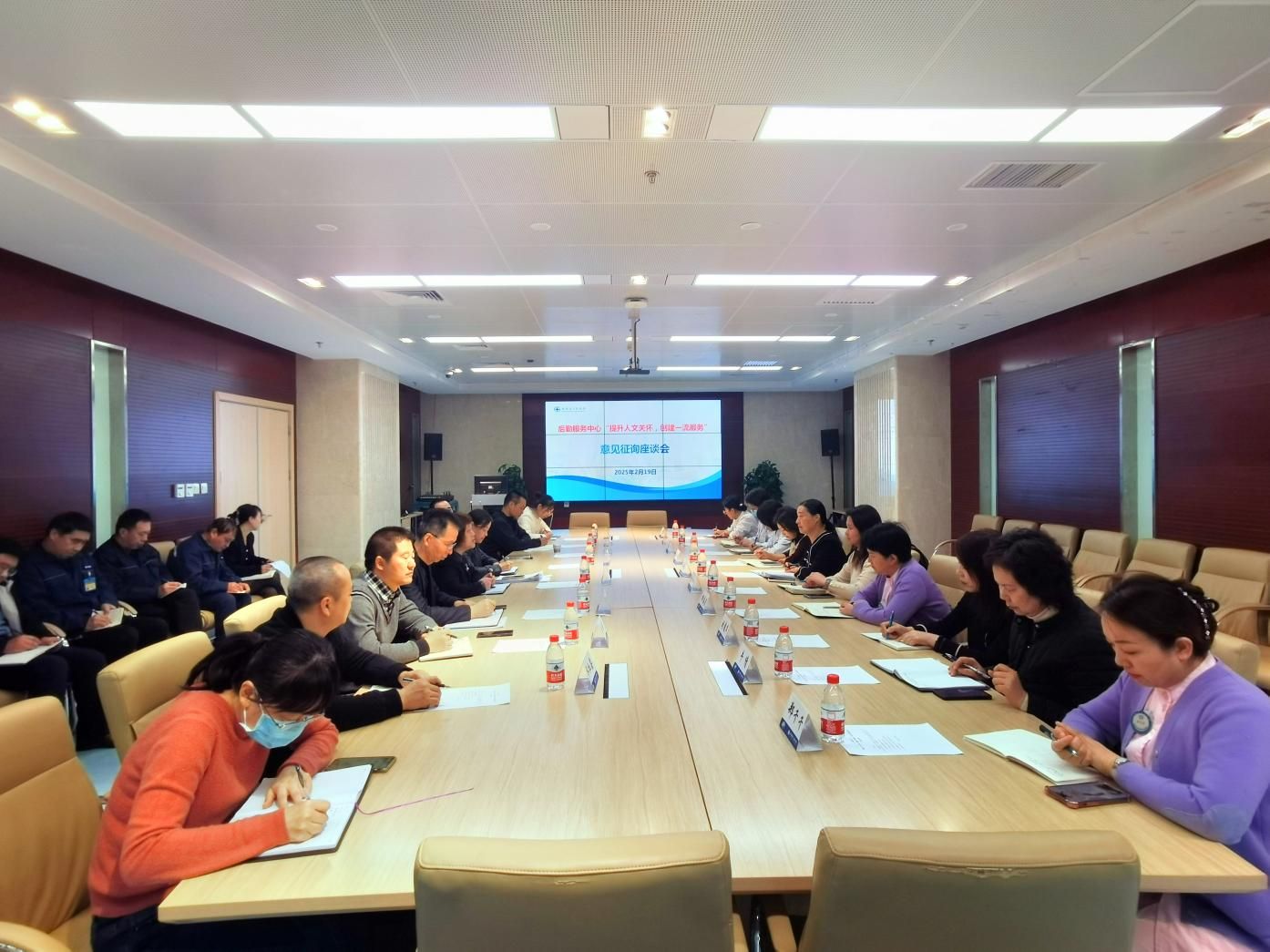 “特色建设与品质提升年”部署,实现“六大”一流品牌建设目标,深入推进医学人文关怀提升行动,2月19日上午,后勤服务中心举办“提升人文关怀,创建一流服务”意见征询座谈会,后勤服务中心各部门负责人及班组长全员参加会议,并特邀护理部刘晓梅和刘红梅副主任、总护士长及部分临床科室护士长等参会,听取对后勤服务工作的建议。会议由后勤服务中心戴浚副处长主持。