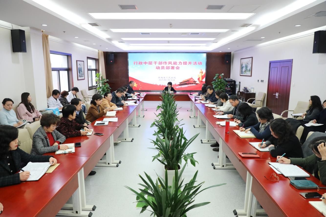 为进一步激发全院干部职工干事创业活力,锻造一支政治过硬、作风优良、能力突出的干部队伍,2月20日上午,院党委召开行政中层干部作风能力提升活动动员部署会,系统部署“人心思齐、人心思进、人心思干、人心思廉”作风能力提升活动。在院领导班子成员及行政副处级以上中层干部参加会议。党委书记张玉莲做动员讲话,党委副书记张路主持会议,党办、院办、医务处、总务处、医学装备部、耗材试剂部等六部门负责人表态发言,展现了全院上下同心协力、奋发有为的坚定决心。