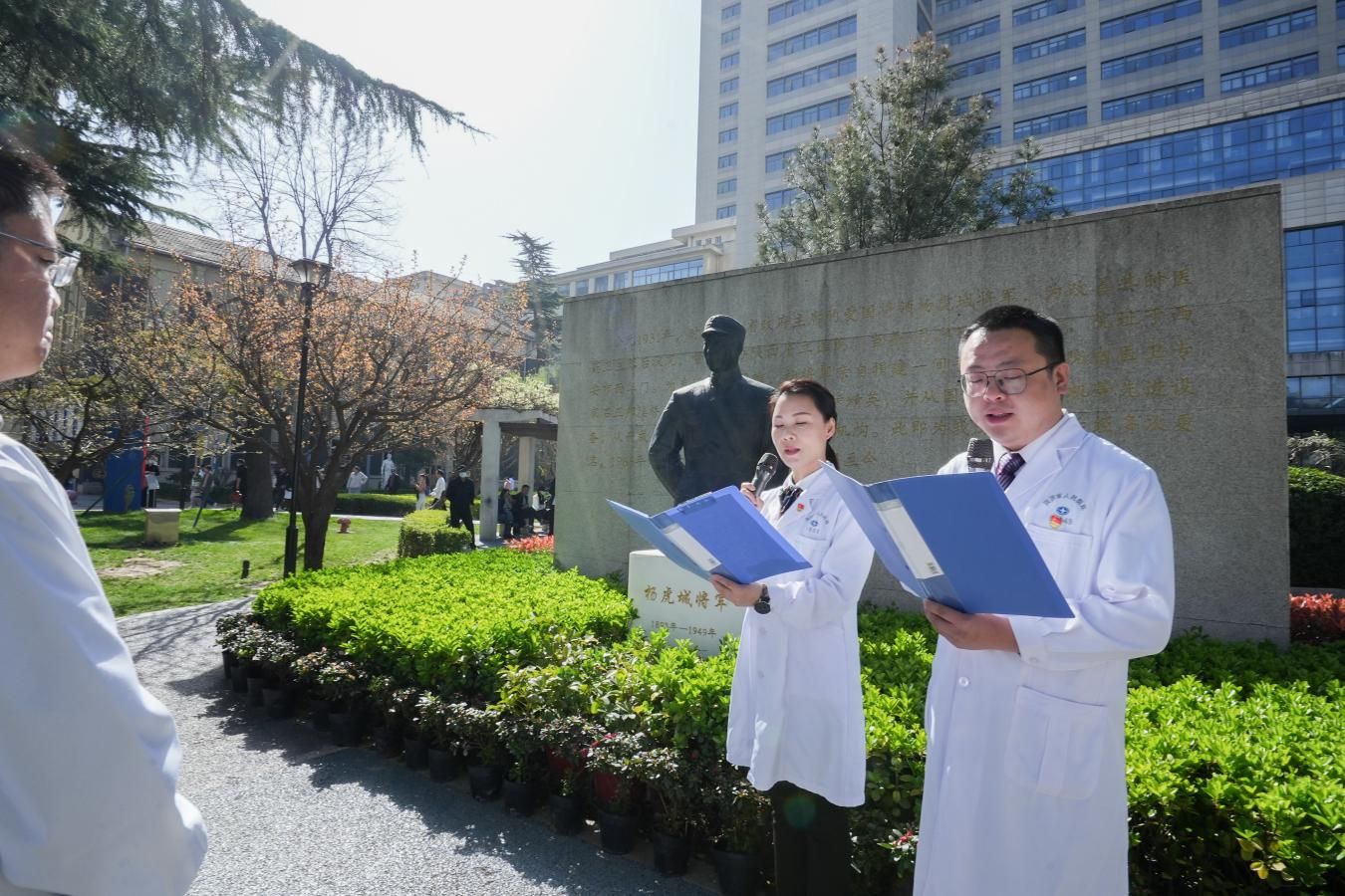 从1931年建院到新时代“一院两区”发展的壮阔历程。献花环节,院领导班子成员缓步上前,将鲜花敬献于雕像基座,一束束鲜花寄托着对建院先辈的深切追思。全体人员集体鞠躬致敬,静默中传递着“健康所系、性命相托”的医者誓言。仪式全程庄重有序,展现了21点策略