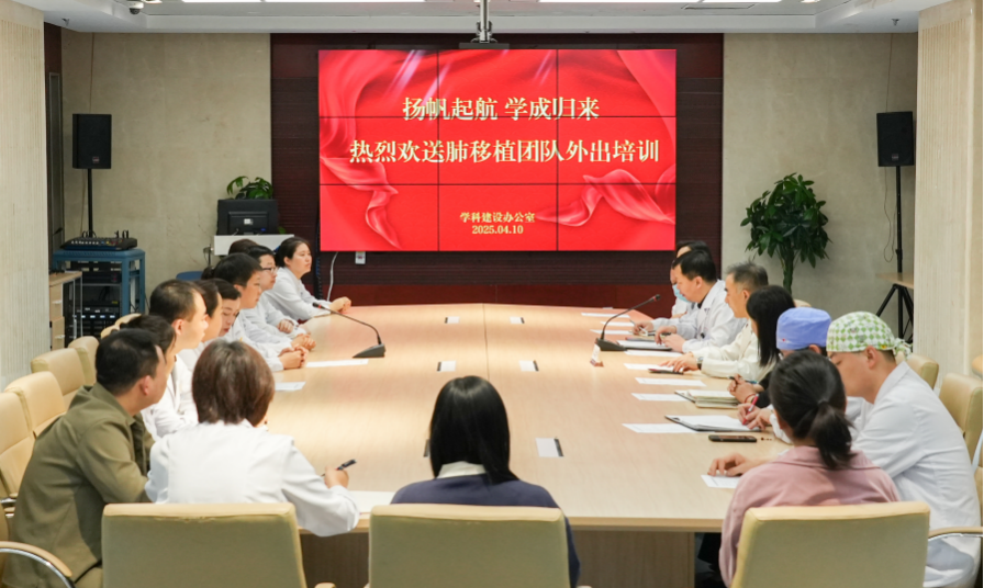 为学习团队举行欢送仪式,王建华副院长、相关职能处室负责人及肺移植团队医护人员参加会议。